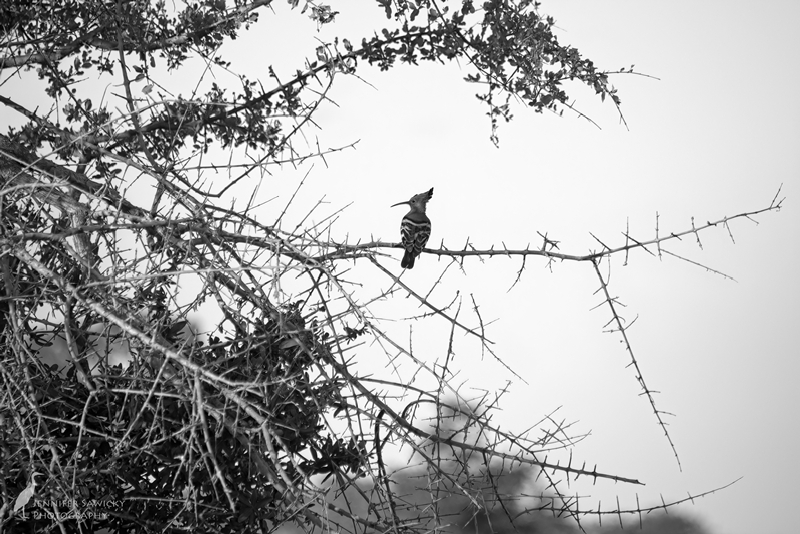 The pygmy is the smallest of the kingfishers seen in Southern Africa, and they really are a treat to spot, with jewel tone feathers and an intensely orange beak. This one was seen in typical woodland habitat. The barbed wire seems out of place in the bush, but the track we were driving along had an open construction excavation along the length of the road (I believe putting in a new water pipe), and the wire provided some demarkation between the work zone, and where it was safe to drive.